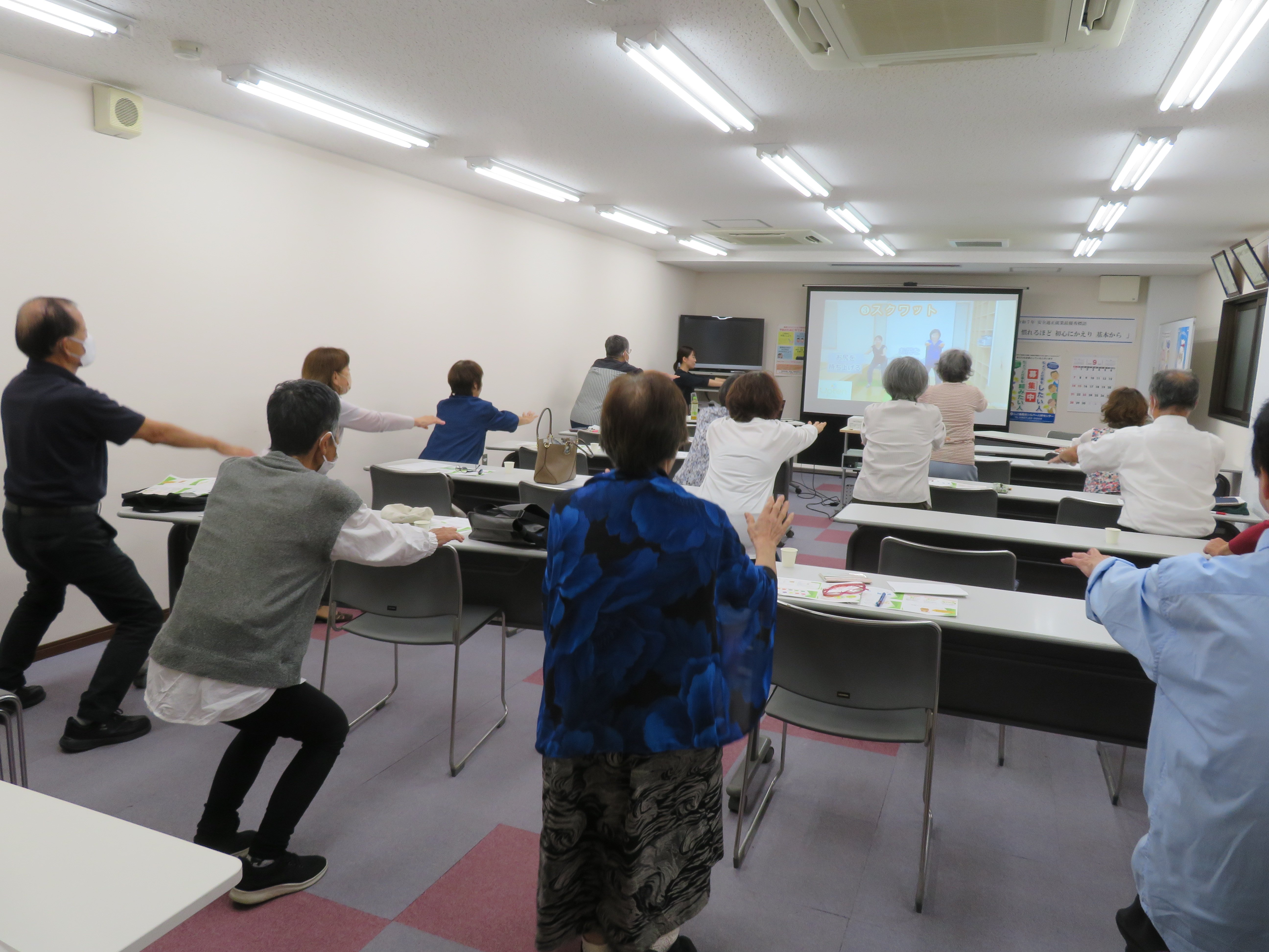フレイル予防に効果的な筋力トレーニングを全員で行いました。